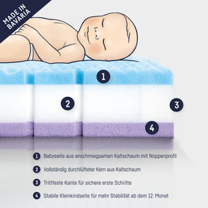 High-quality baby mattress made of three foam layers for a soft yet stable lying position.